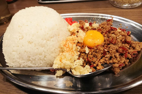 マシライスというのは、ライス(大きさは選べます。確か300g~700gだったかな)に挽き肉・豚の背アブラ・しょうが・そしてお好みでニンニクをまぜたもので豪快に食べる一品。