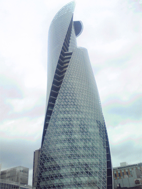 モード学園スパイラルタワーズ。すごいですねー。真下から見たのは始めてでしたが、見る方向によって形状も違うんですね。とにかく目立ちます。現場は大変だったでしょうに。精度とか逆に測定できないところがいっぱいありそうです。
