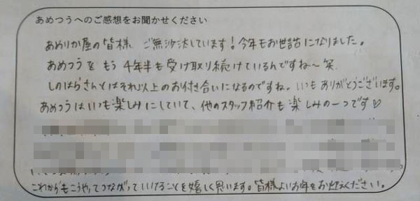 やはりこうして喜んでくださるお客さまがいると、継続しててよかったなぁ~という気持ちになります。