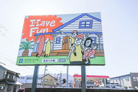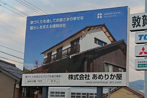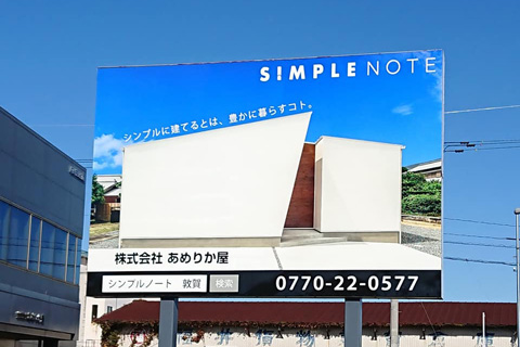 ちなみに反対の面は、白いデザイン住宅と青空が美しい外観写真をメインにした看板にしました。