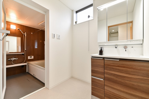 1階だとどうしても来客時の動線が干渉しがちです。お風呂と洗面が2階にあることで2階がプライベート空間として完結するのは魅力です。