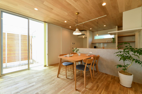 そして敢えてダイニングをリビングと兼ねるスタイルです。