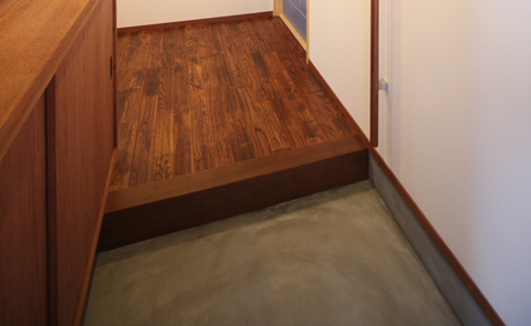 玄関土間床ってタイル貼り仕上げにする場合がほとんどですよね。でも、いわゆるデザイナーズ住宅や、シンプルデザインの家では、玄関の仕上げをモルタル塗りにすることが多々あります。