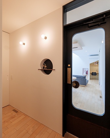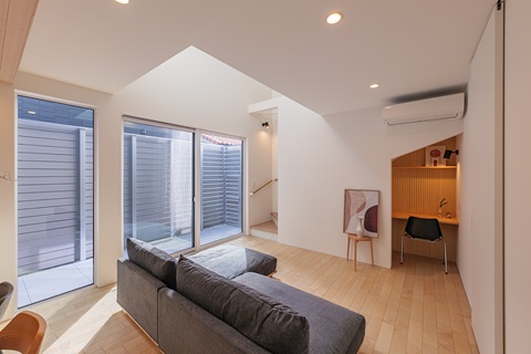 中庭に入る光を、目隠しフェンスによりカーテンを開けていられる窓で採光とることで明るいLDKが実現。