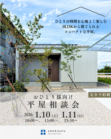 おひとり様向け平屋相談会2026年1月10日(土)11日(日)開催します
