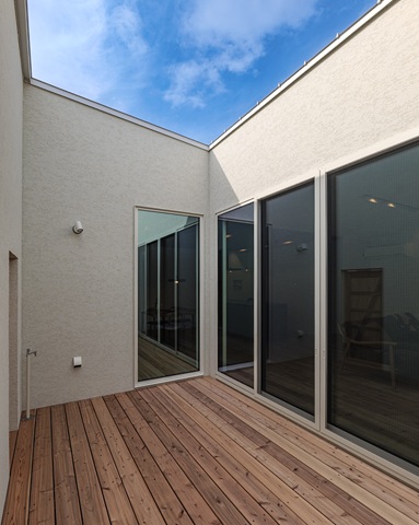 窓は中庭面に大きな窓を配置していてカーテンレスで暮らせるほどの解放感。