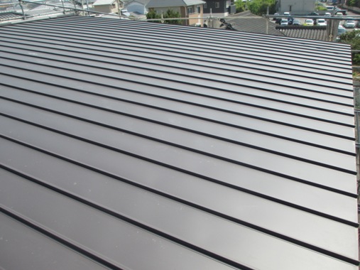 金属屋根(ガルバリウム鋼板、立平葺き)「直線美ですね~」