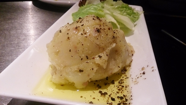バルってスペイン語でBarの意味でして、いわゆるひとつの洋風居酒屋?という感じです。はっきり言って語るほど詳しくないんですど、ぼくは好きな感じです。(説明になってない)とにかくお酒にあう料理がたくさんあります。ぼくはビールよりもワインの方が好きなので、ワインをいただきます。う~んやっぱ赤ですね。(白でもいいけど。←どっちやねん!)