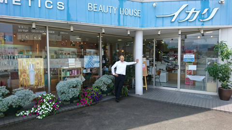 ↑コチラがビューティーハウスイカリさん。緑もきれいでガラス張りのステキな店構えですね。