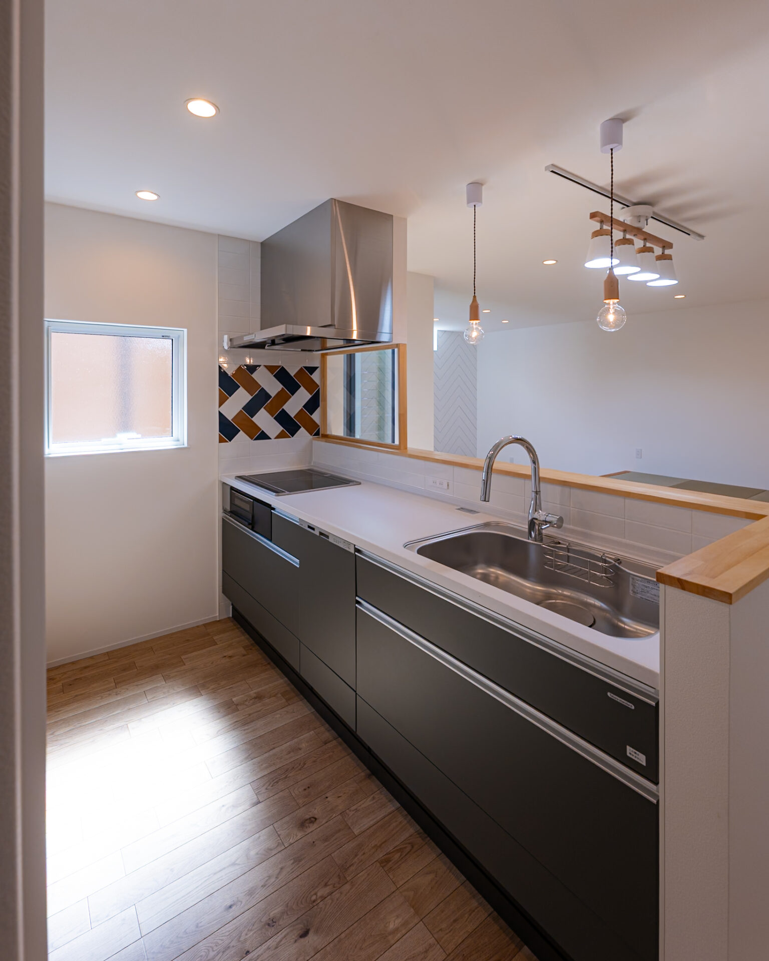 オリジナルキッチンと中庭が映える家(シンプルノート):福井県小浜市