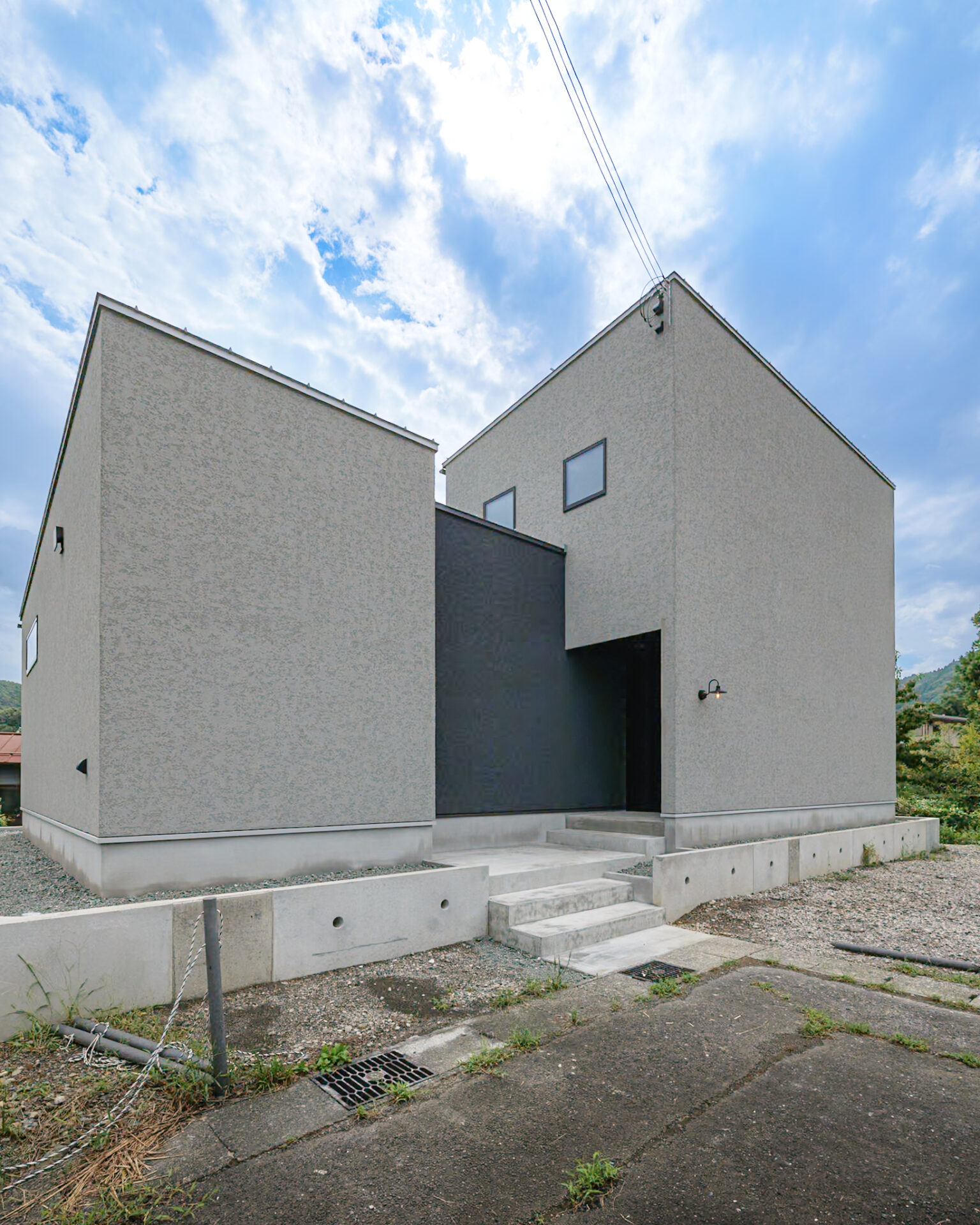 外壁グレーと白のシンプルデザインの家:福井県敦賀市