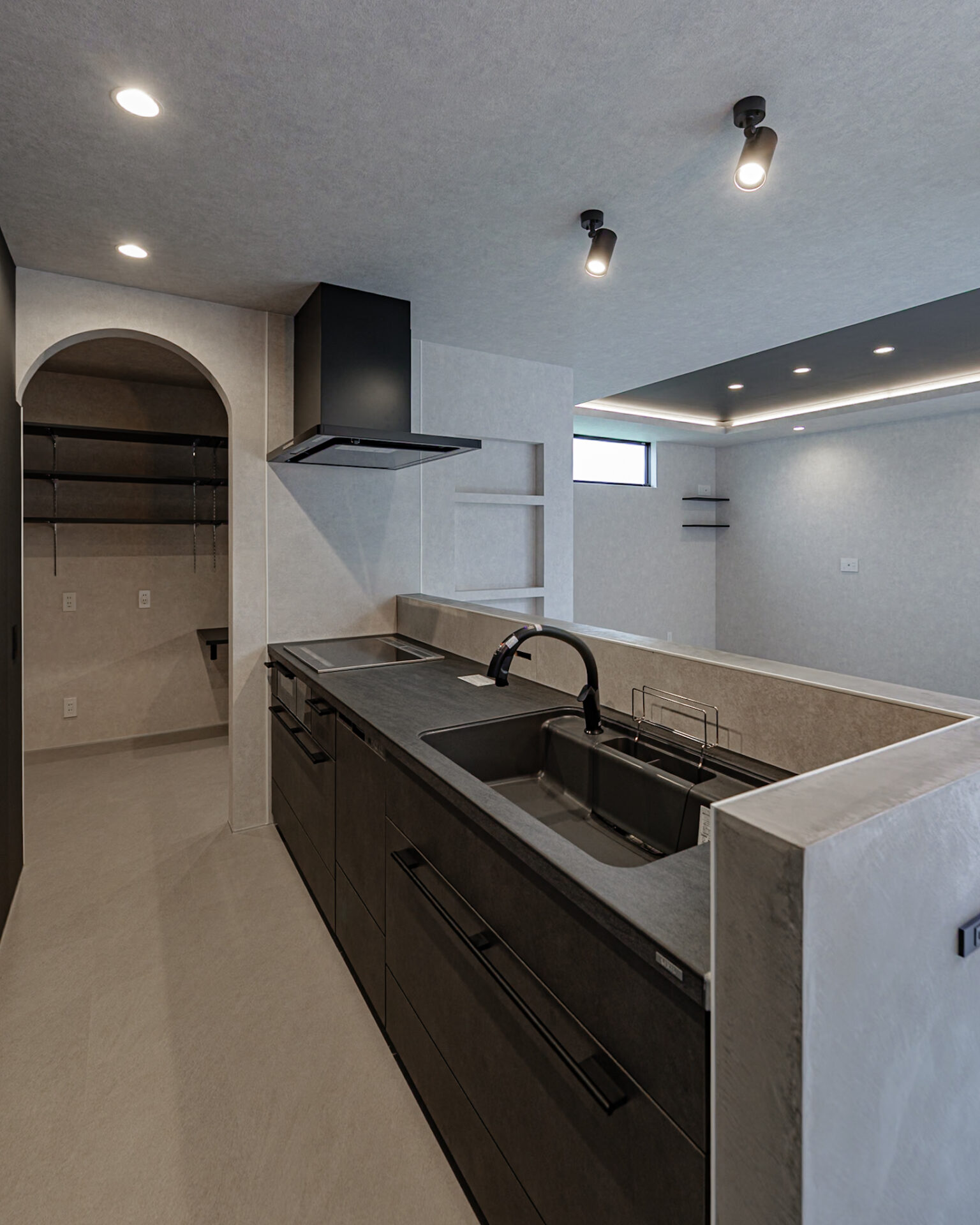 ブラックガルバ×オープンキッチンの家(オリジナル):敦賀市