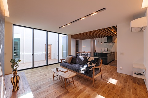 タイルデッキの中庭のある家(シンプルノート):敦賀市