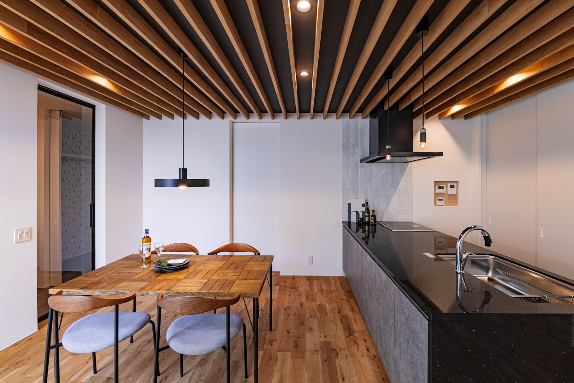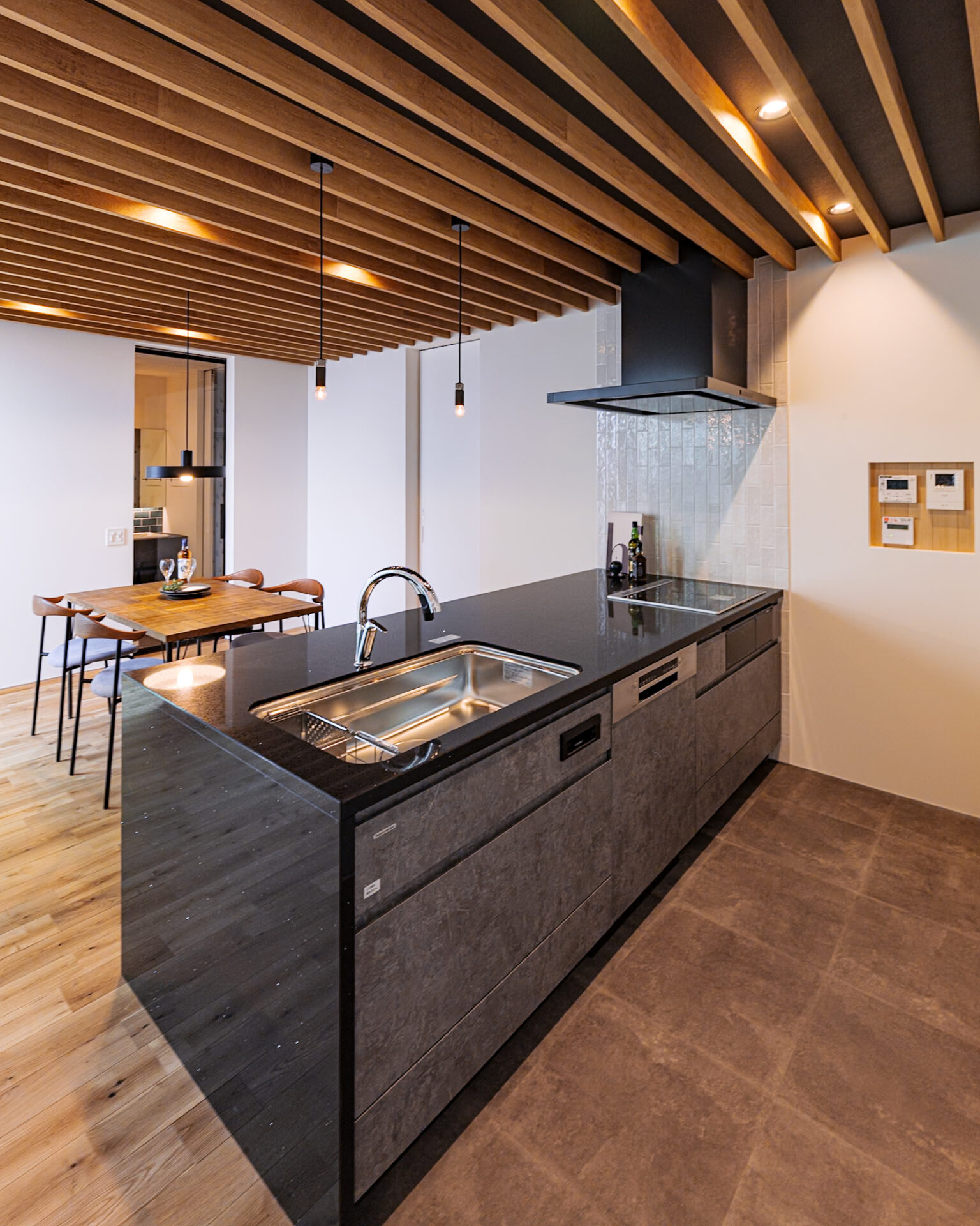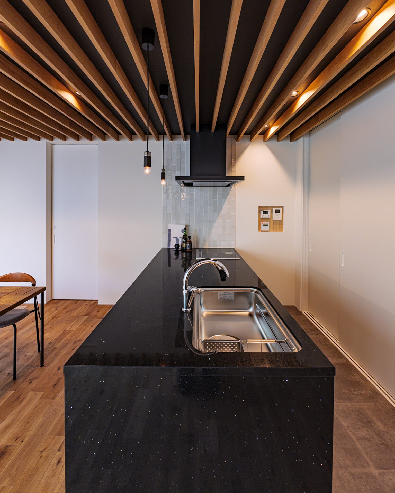 ブラックガルバ×オープンキッチンの家(オリジナル):敦賀市