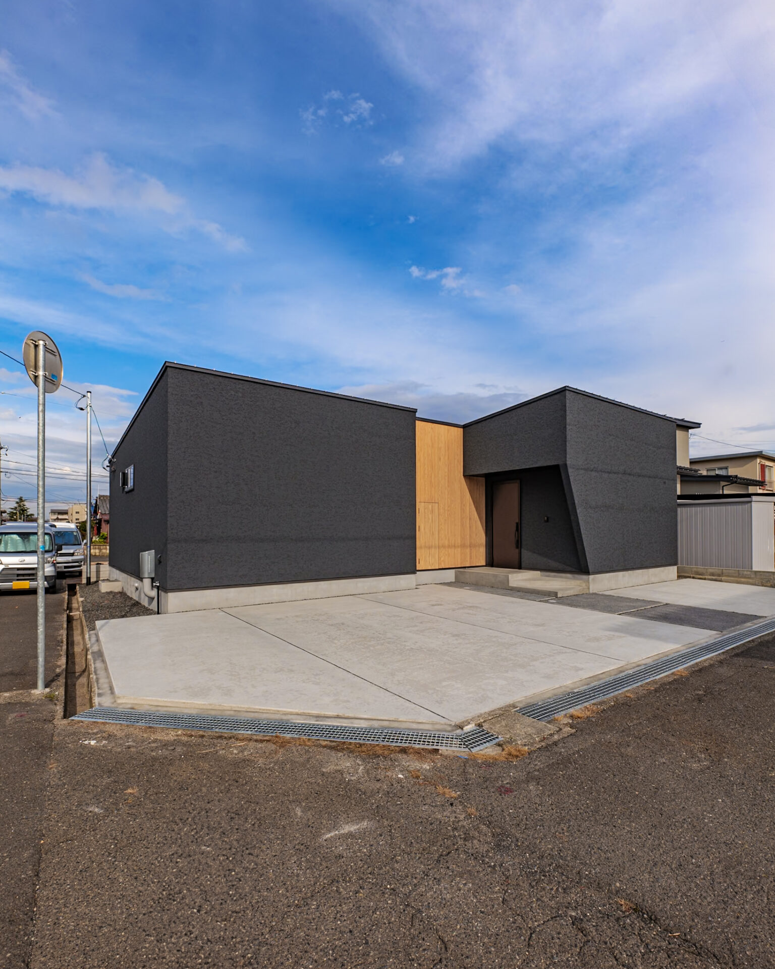 黒い塗り壁の外壁と中庭がステキな平屋の家(シンプルノート):福井県敦賀市