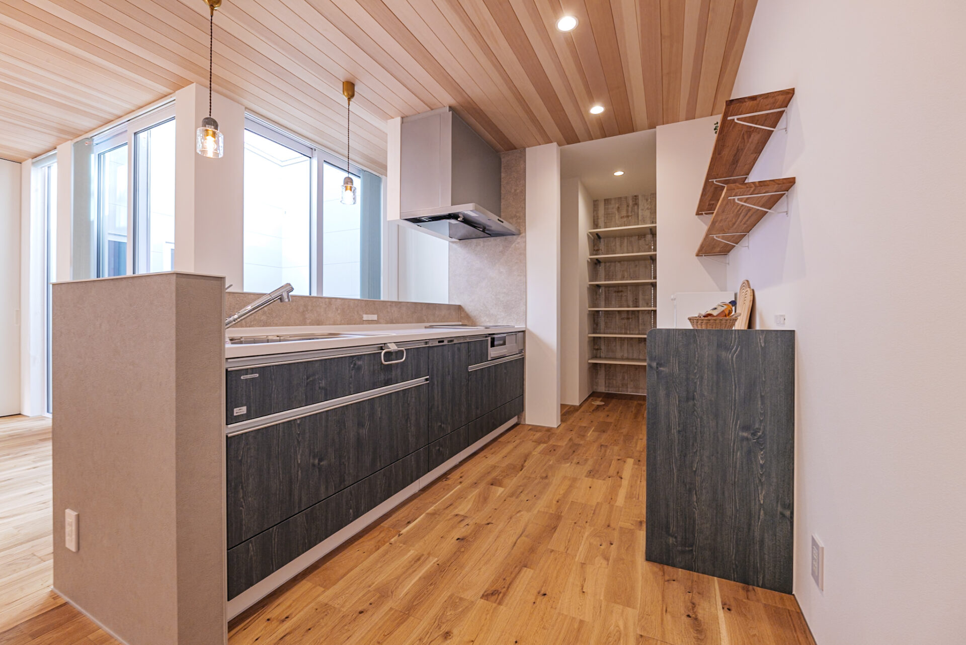 オリジナルキッチンと中庭が映える家(シンプルノート):福井県小浜市